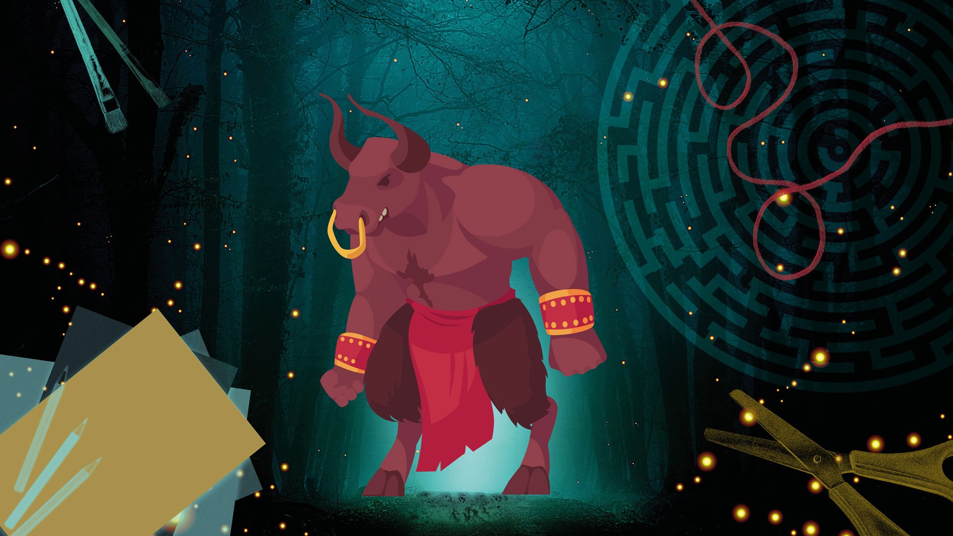 Gemeinsam hören wir die Geschichte des Minotaurus und stellen am Basteltisch dieses Ungeheuer und verschiedene Labyrinthe her.